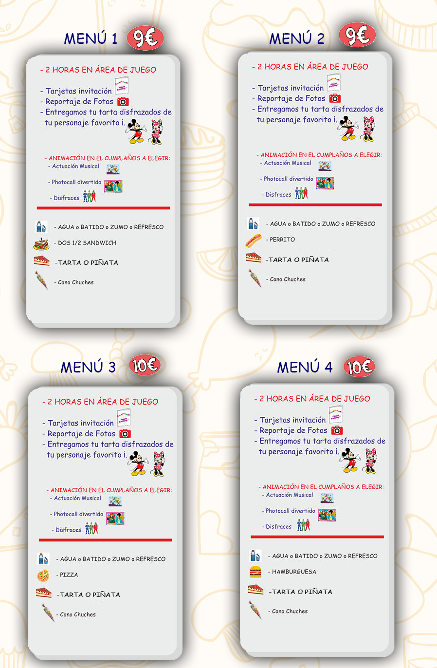 Precios de los menús válidos hasta el 31 de diciembre 2025